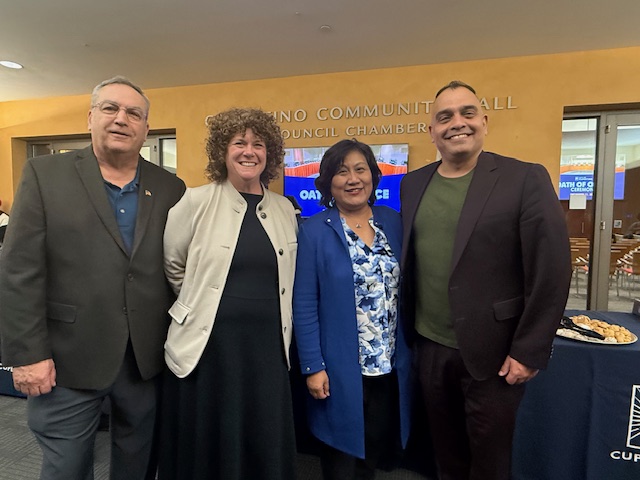 Above (left to right): Randy Bryant, Vice President, Workforce Innovation and Economic Advancement, De Anza; Elizabeth Smith, Associate Vice President, Communications and External Relations, De Anza; Cupertino Vice Mayor Liang Chao; Omar Torres, President, De Anza